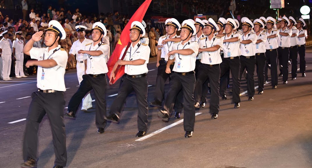 frégate lance-missiles HQ-011 Đinh Tiên Hoàng s’est alignée avec une centaine de